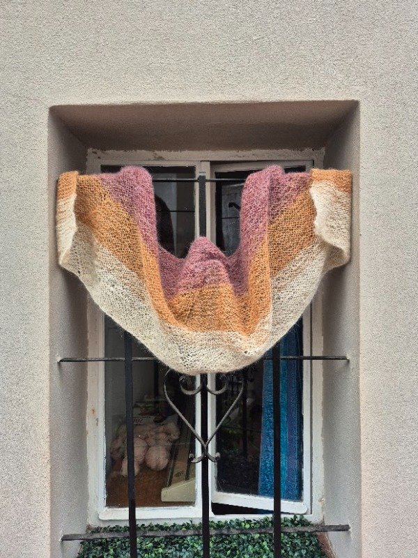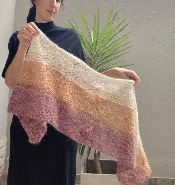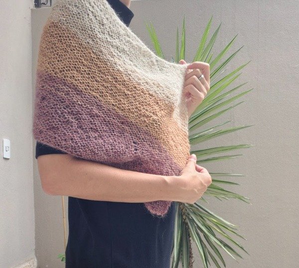 El chal se teje con fibra de llama en grosor lace, tejida doble hebra con agujas número 3 mm